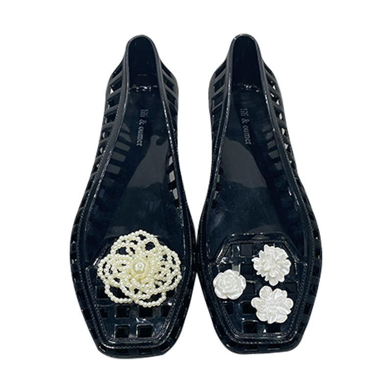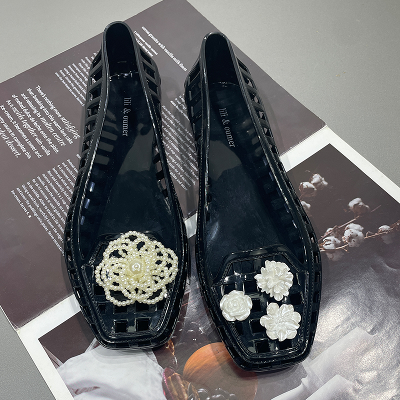 配饰洞洞鞋 花果冻鞋 水晶鞋 装 扣 韩国新款 饰亮片珍珠花朵方头凉鞋 鞋