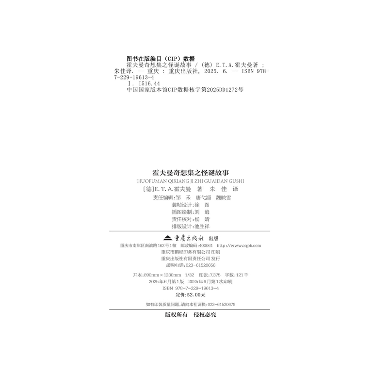 社新华书店正版 武侠小说重庆出版 著玄幻 霍夫曼奇想集之怪诞故事E.T.A.霍夫曼