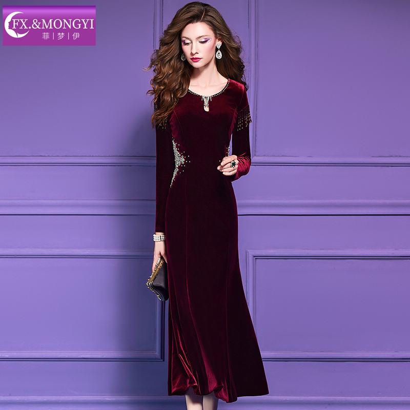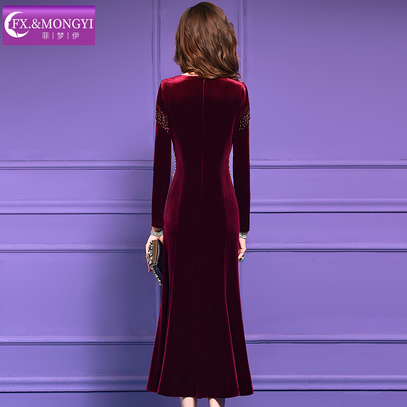 KEIKO 轻法风穿搭丝绒连衣裙25复古玫瑰花纹显瘦A字长裙 赠披肩