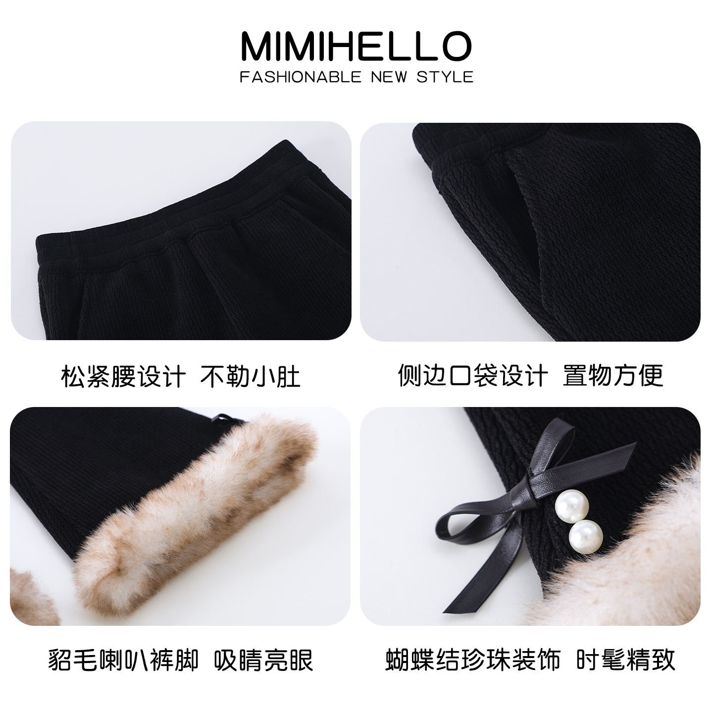 2025新款 女装 秋季 子宽松bf慵懒风黑色直筒裤 舒适针织裤 三福休闲裤