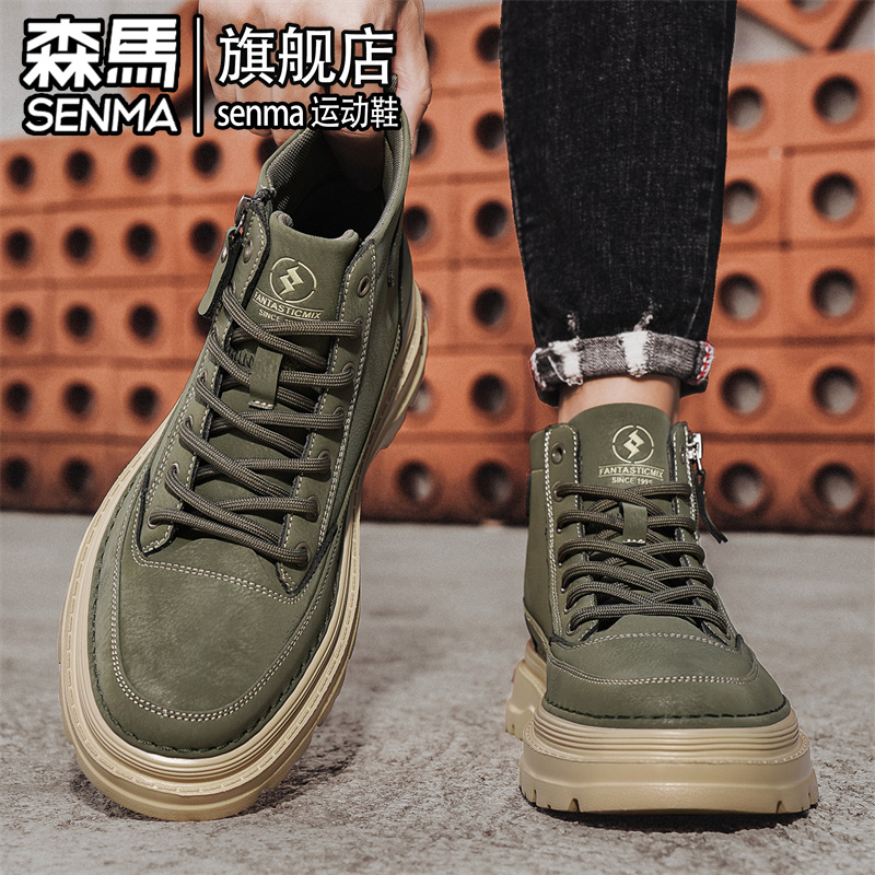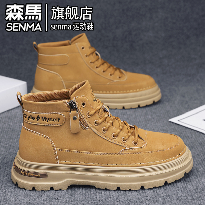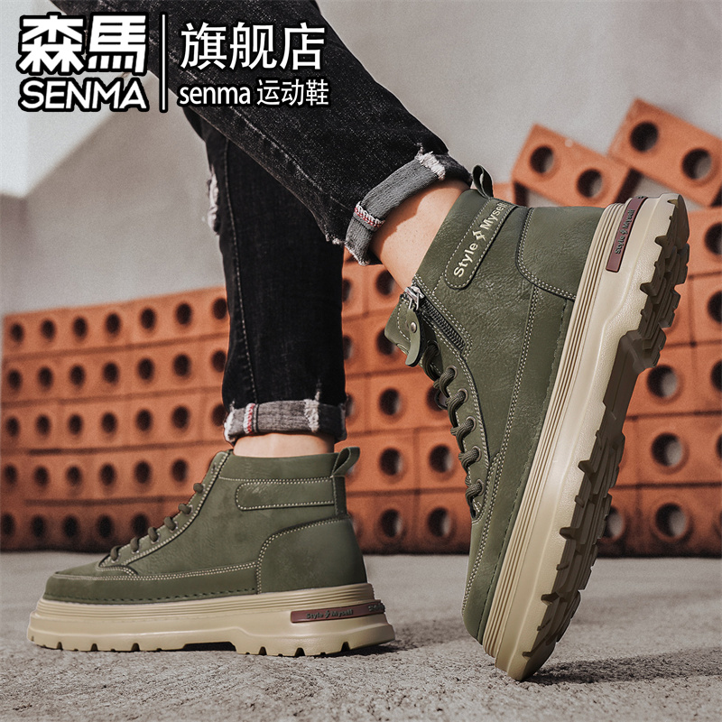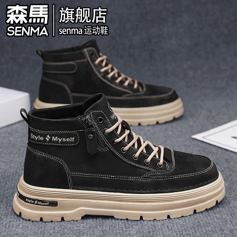 真皮防水防滑中帮工装 森马高帮男鞋 男士 运动休闲中帮板鞋 靴子 秋季