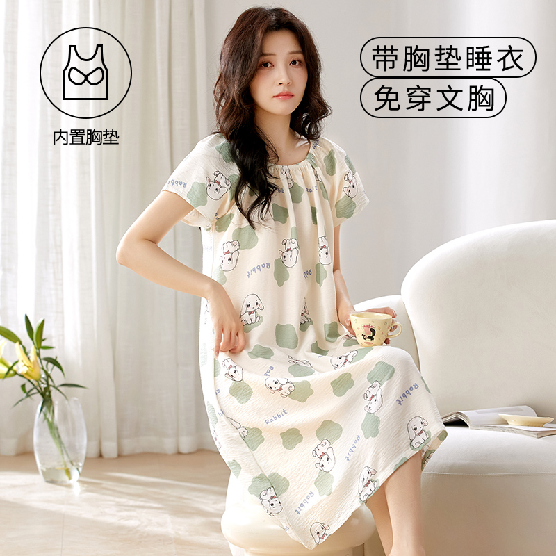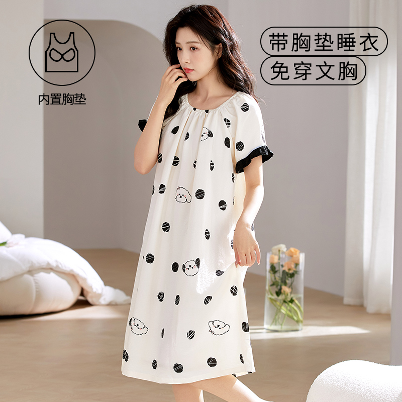 猫人棉绸睡裙女带胸垫夏季 莫代尔家居服 凉感简约甜美冰丝睡衣短袖
