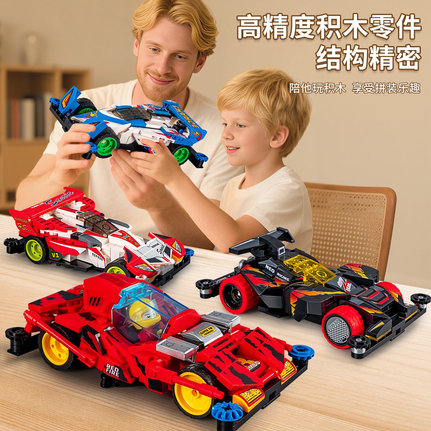 礼物 12岁炫酷森宝积木玩具2025年新款 积木跑车拼装 模型男孩益智6