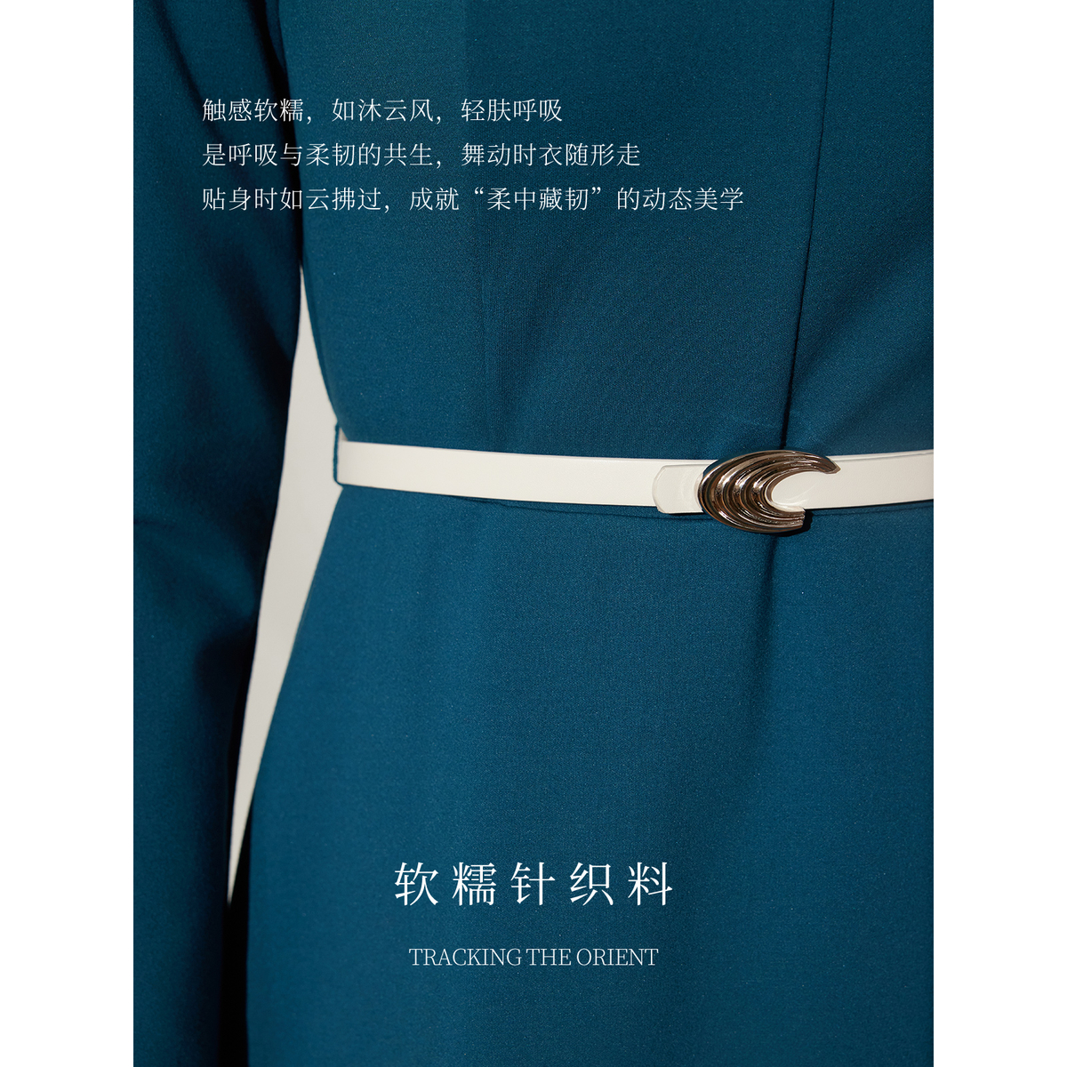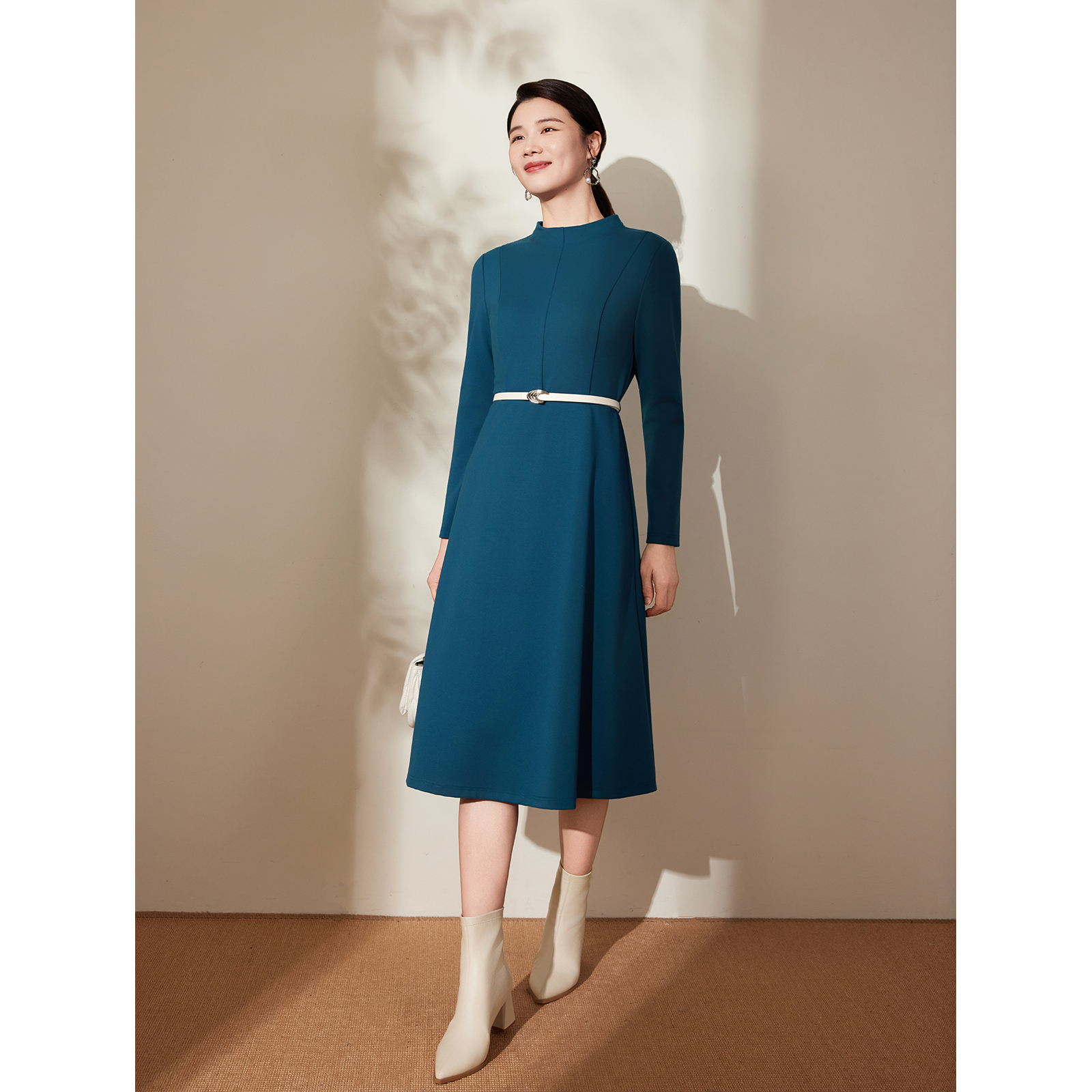 立领针织连衣裙女 简约气质中长款 BBLLUUEE 粉蓝衣橱2025秋冬新款