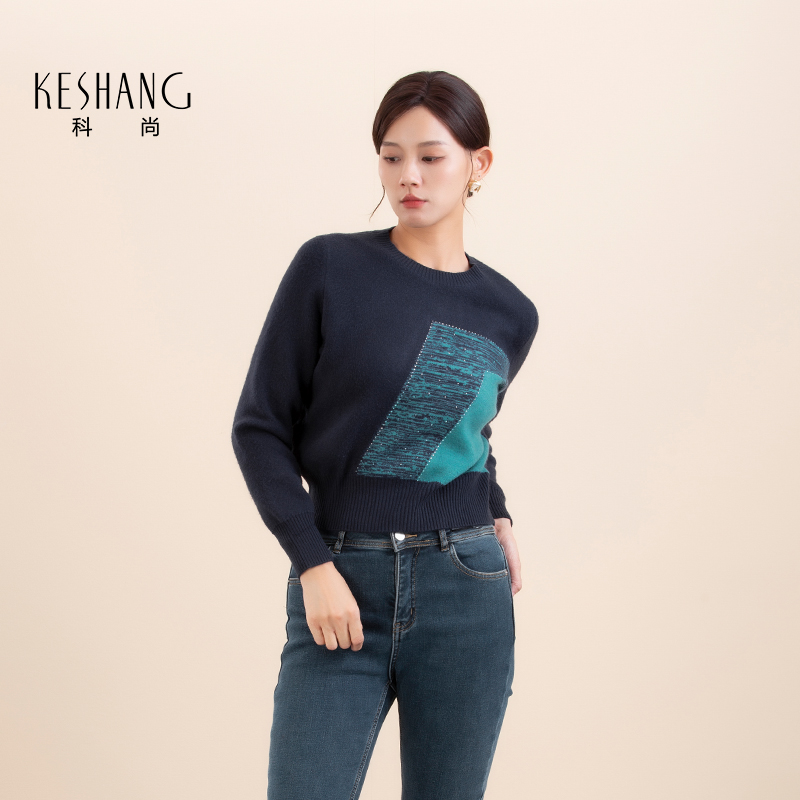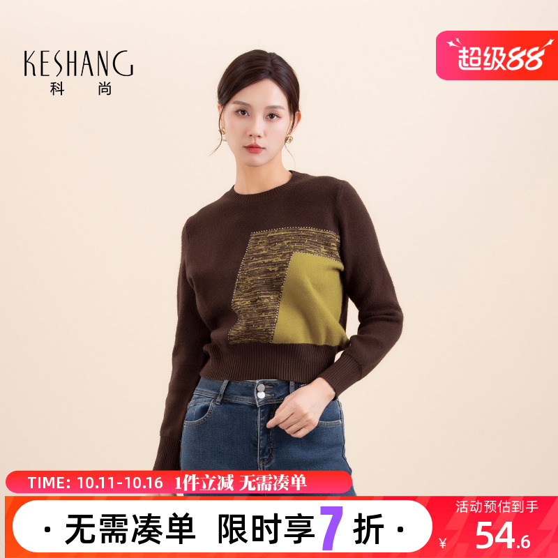印花针织衫 洋气时尚 显瘦宽松 拼接毛衣女2025冬新款 科尚半高领时尚