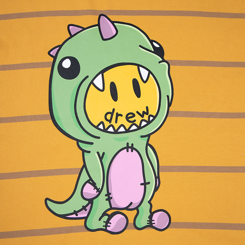 新品 drew T恤25秋男女同款 dinodrew恐龙图案金黄条纹长袖 house