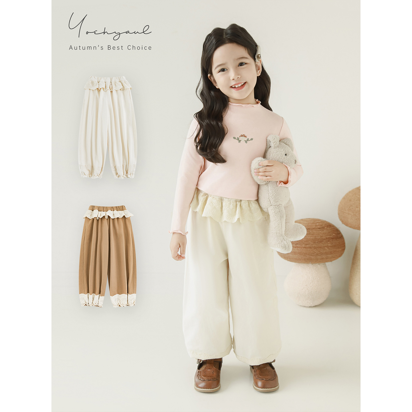 潮 轻盈干练防风保暖梭织束脚裤 幼悠女童小淑女花边蕾丝收脚裤 秋季