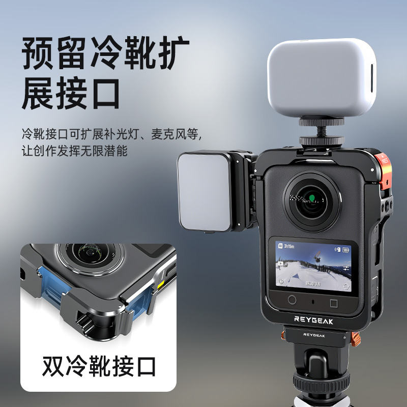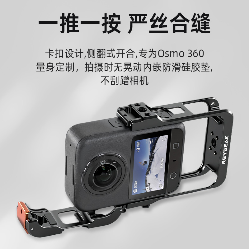 REYGEAK适用于大疆osmo360配件全景相机金属兔笼保护框多功能拓展运动相机防摔外壳保护壳硅胶镜头盖保护神器