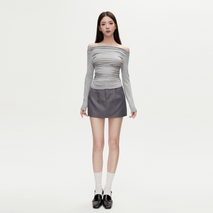 MOCO短裙2025秋新品 高智学院风立体工字褶中低腰半身裙MBE3SKT024