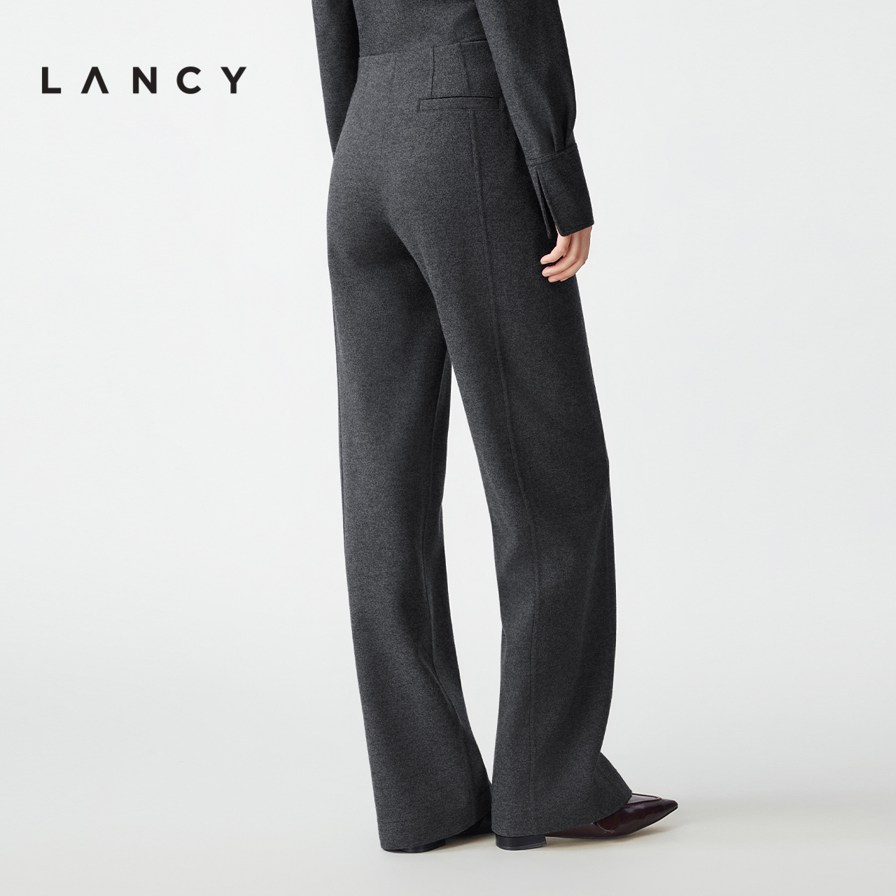 简约百搭松紧腰长裤 老钱风羊毛直筒休闲裤 女 朗姿2025冬新款 LANCY