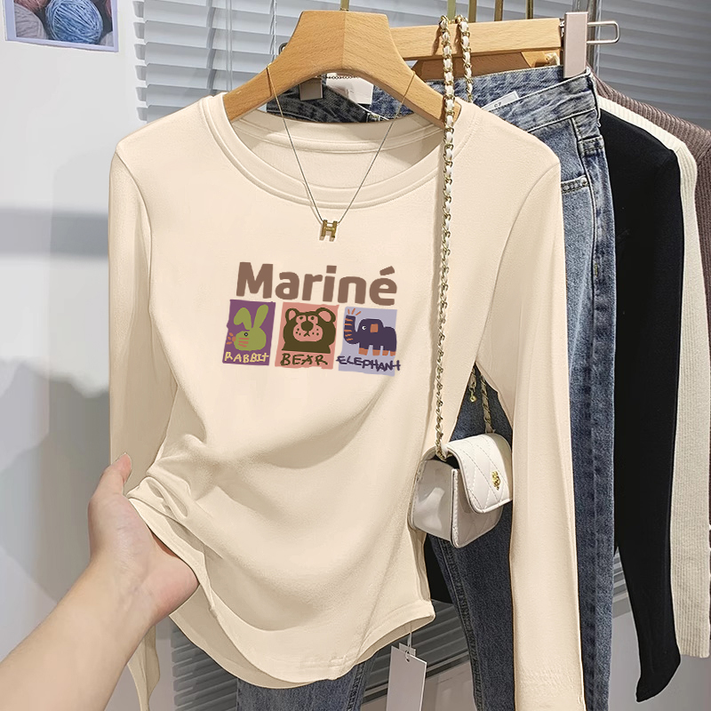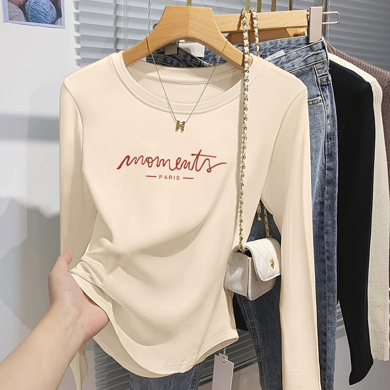 内搭打底衫 白色长袖 洋气微宽松显瘦正肩上衣短款 春秋季 t恤女新款