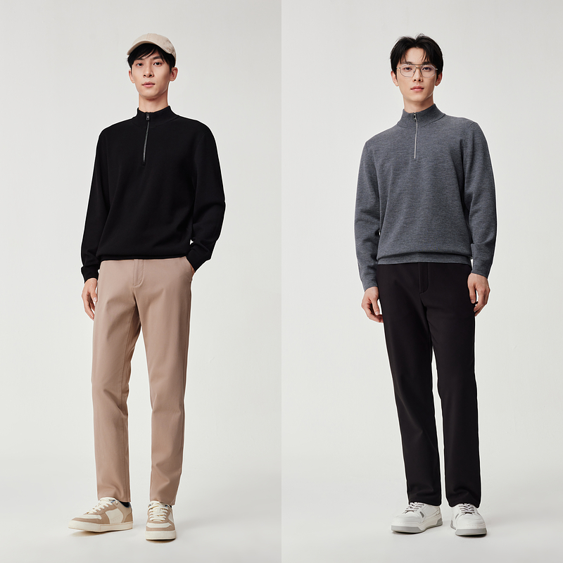 圆领羊毛衫 男士 报喜鸟秋冬新款 半高领休闲针织衫 可机洗易打理