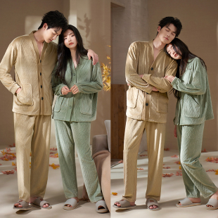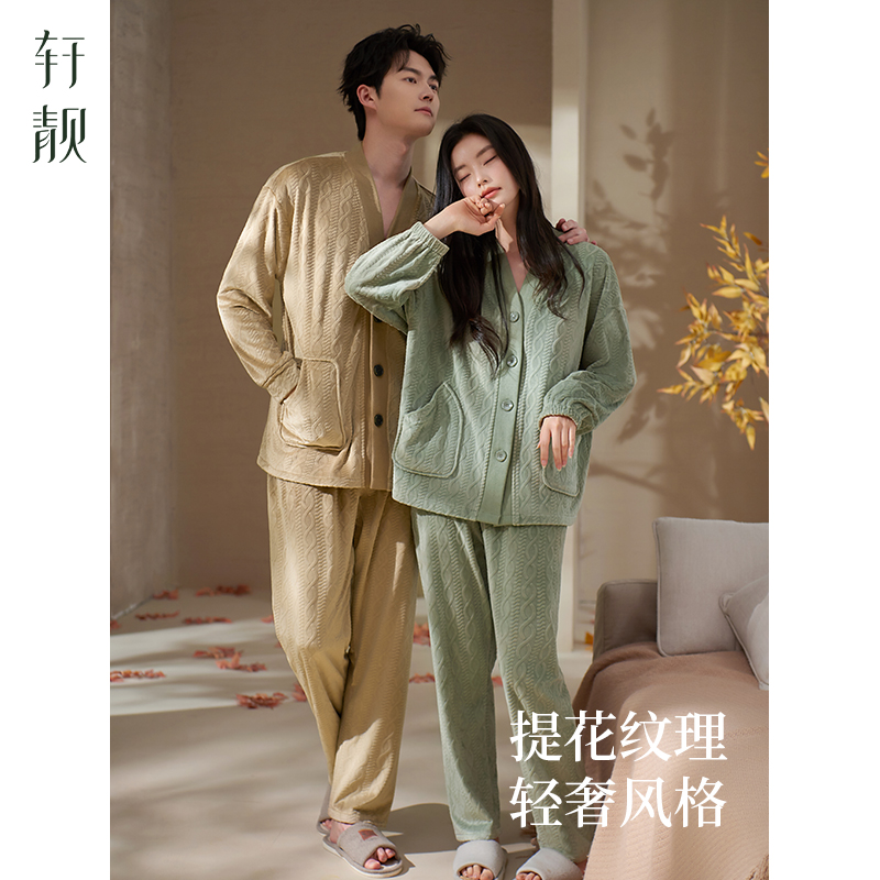家居服套装 轩靓情侣睡衣女秋冬季 海岛绒加绒珊瑚绒可外穿春秋男士