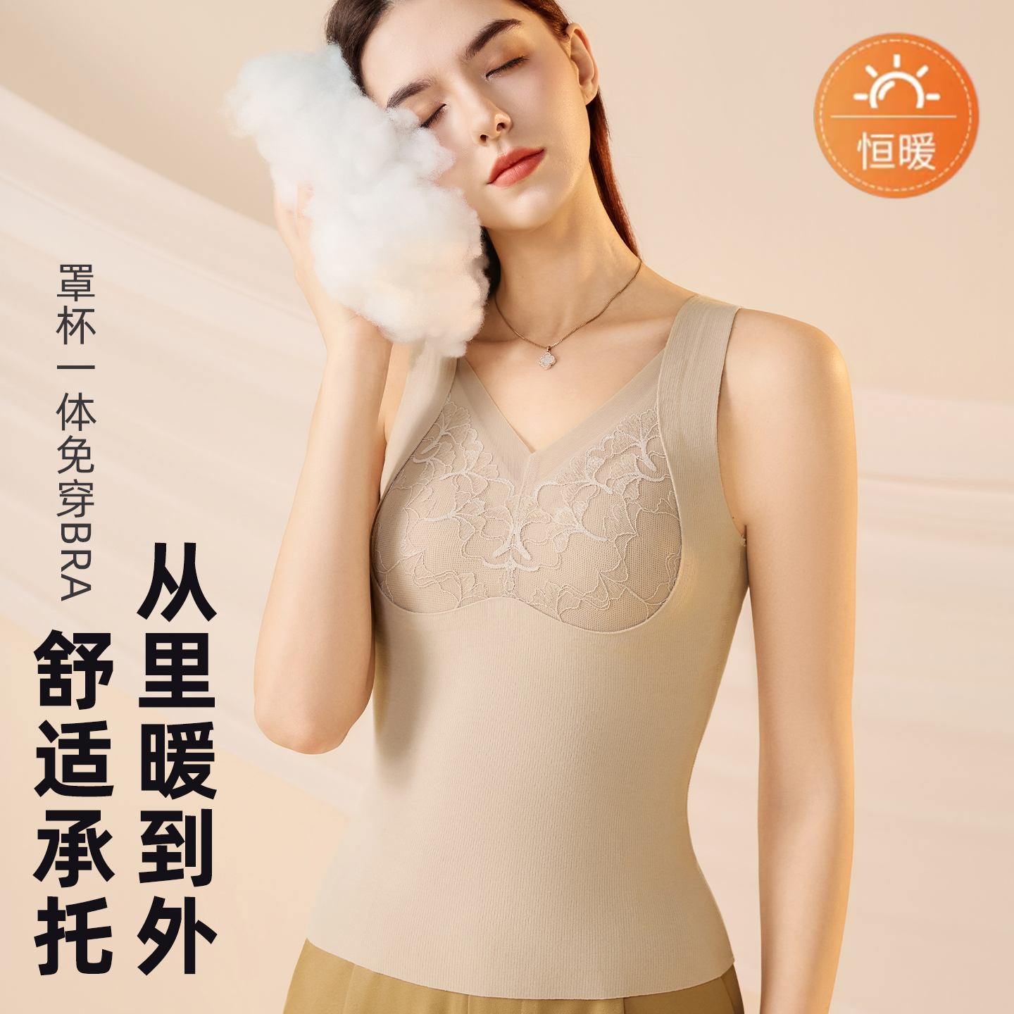 南极人德绒发热内衣无痕保暖背心女士加绒打底上衣带胸垫冬季 内搭