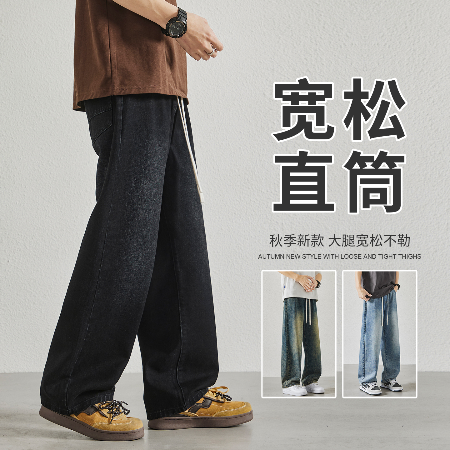 vibe潮流宽松直筒男生阔腿裤 cleanfit美式 春秋季 男款 子 高街牛仔裤