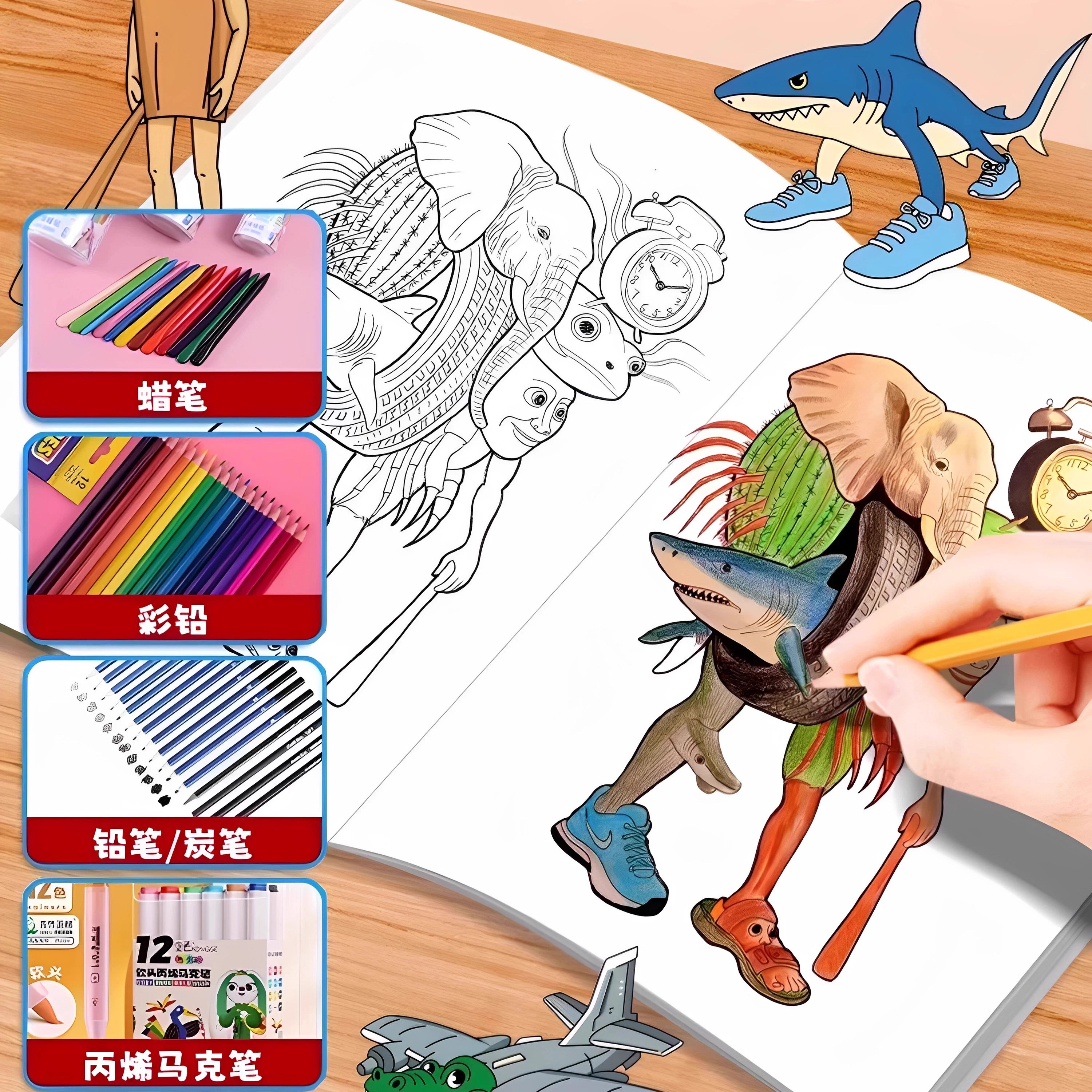 外国山海经ai美国书本描摹本漫画绘本画画涂鸦儿童涂色画本绘画本
