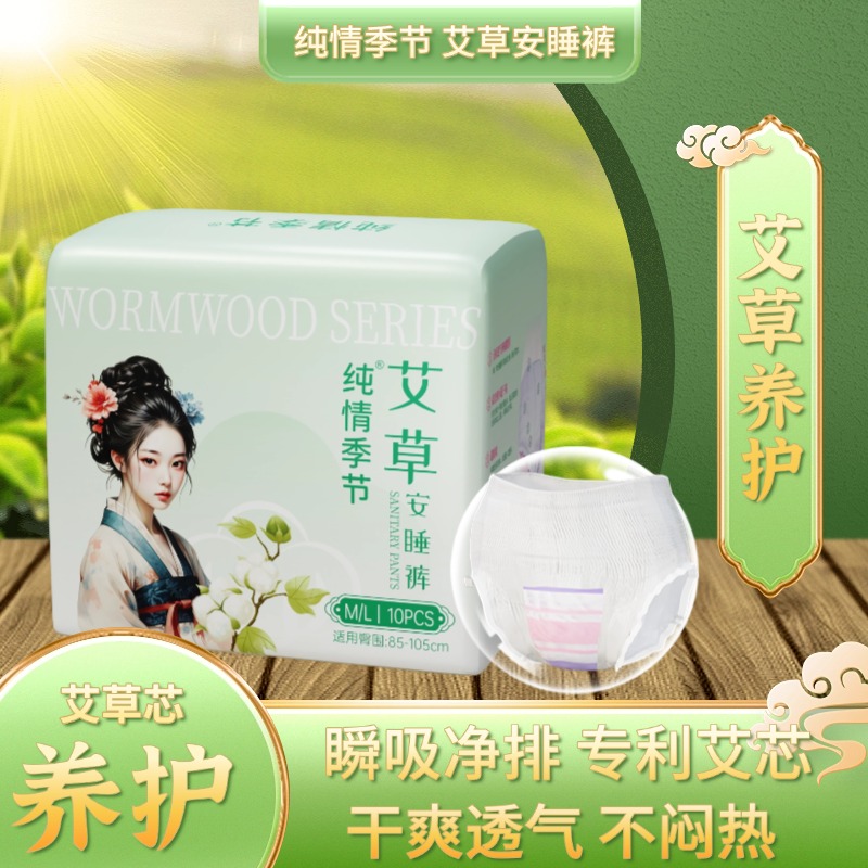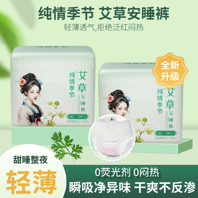 节 型卫生巾草本呵护季 艾草安睡裤 亲肤绵柔超薄透气腰围安心防漏裤