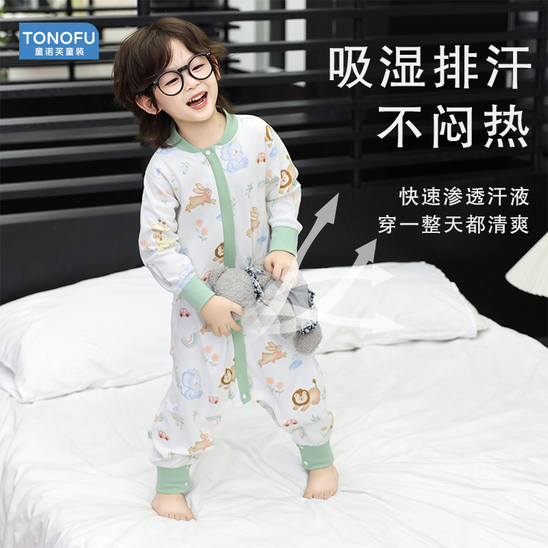 宝宝睡衣纯棉a类儿童家居服连体睡衣婴儿睡袋四季 通用防踢被神器