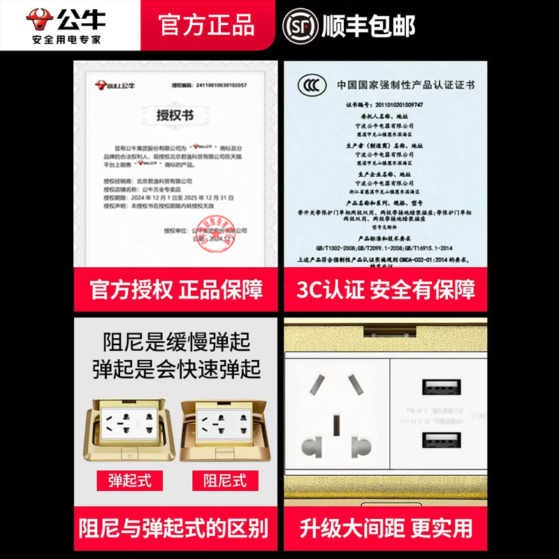 公牛地插插座全铜防水隐形隐藏式 超薄客厅五孔七孔网线地板地插