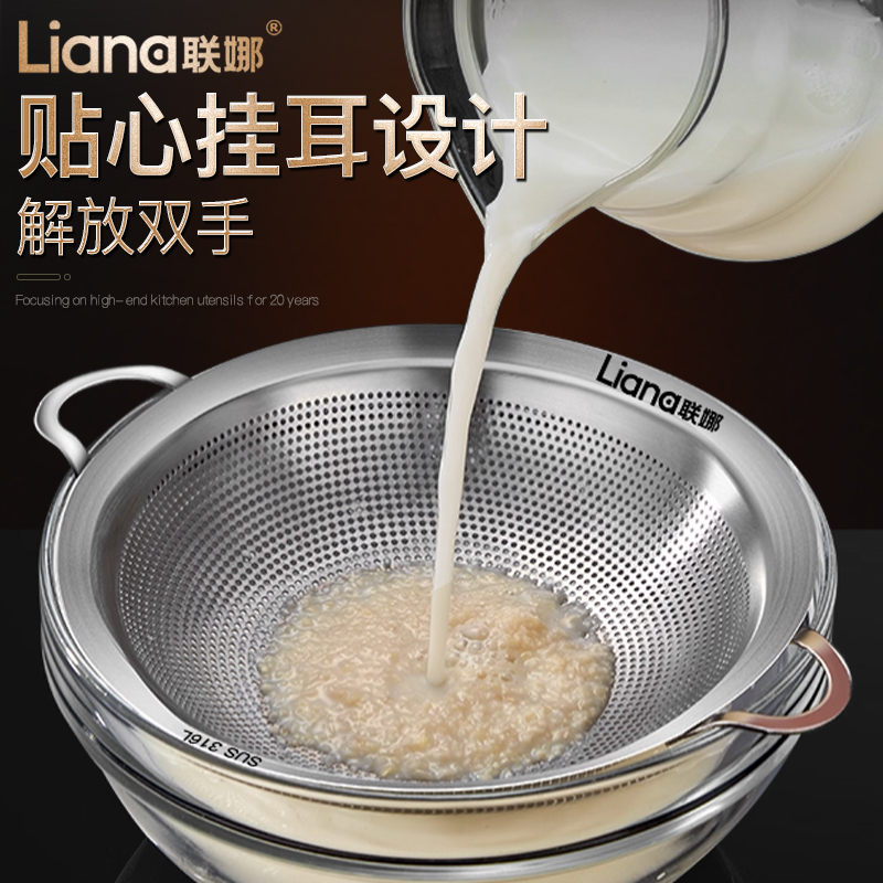 联娜316L不锈钢过滤网漏勺厨房猪油罐隔渣滤油盘炸物滤网筛沥水盘