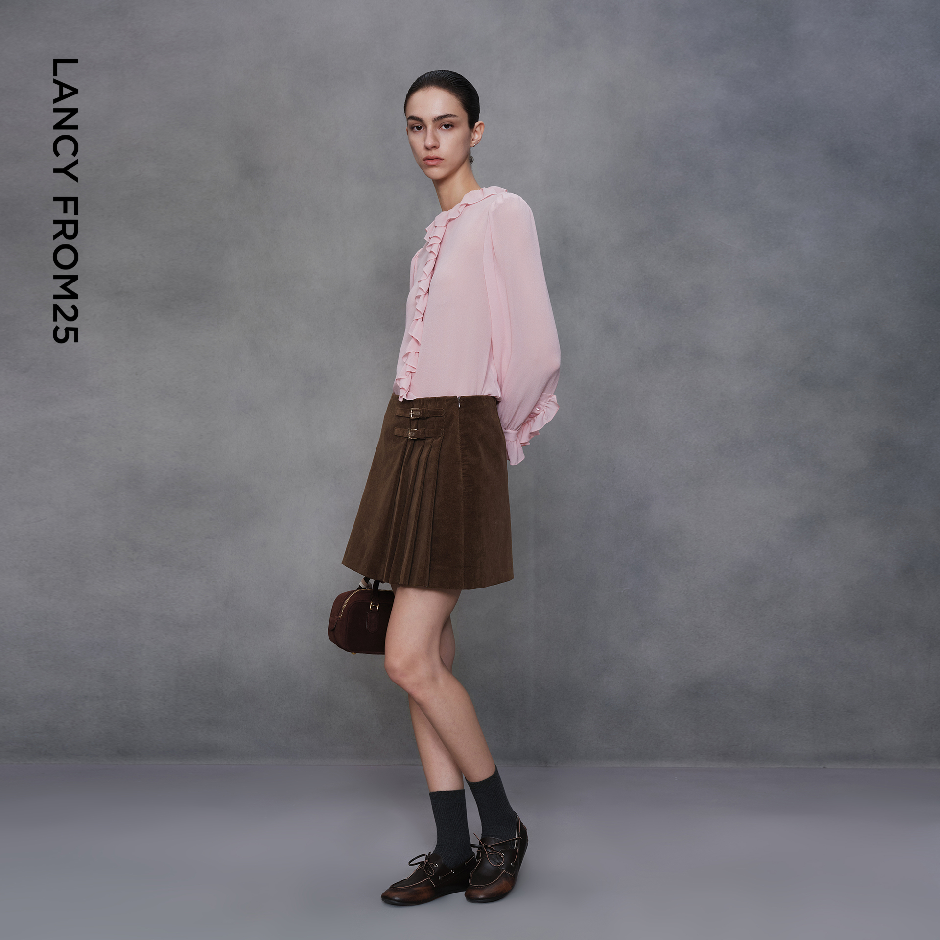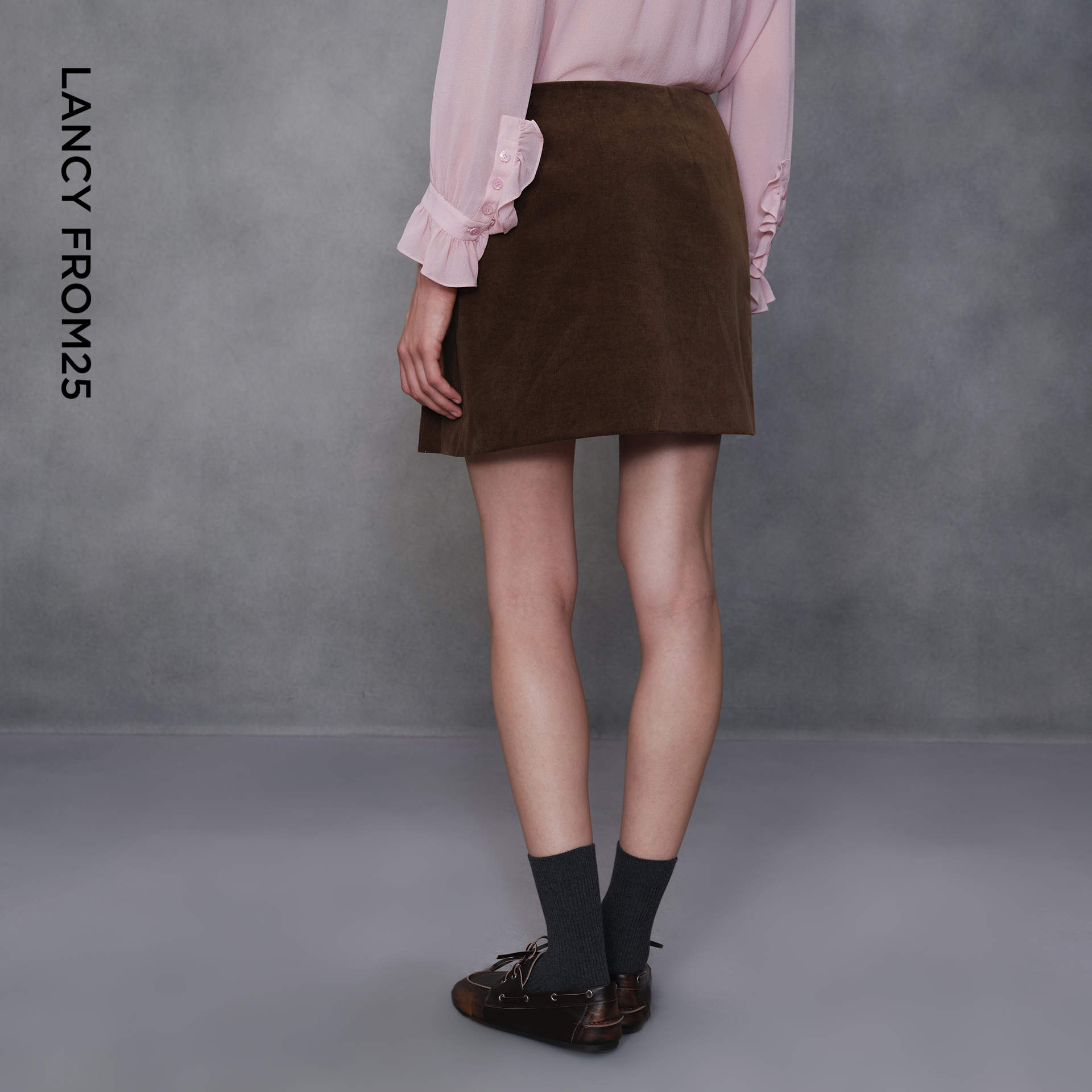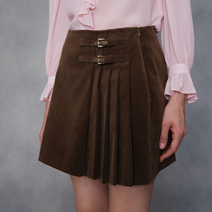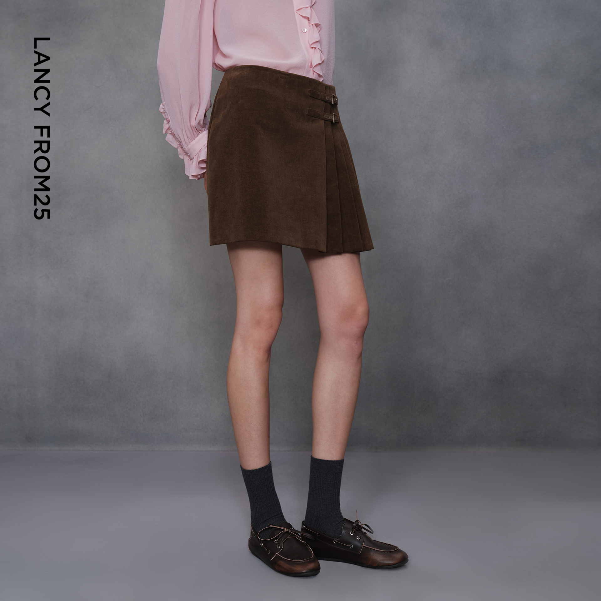 新款 朗姿复古压褶灯芯绒半身裙女A字裙2025年冬季 艺术家联名