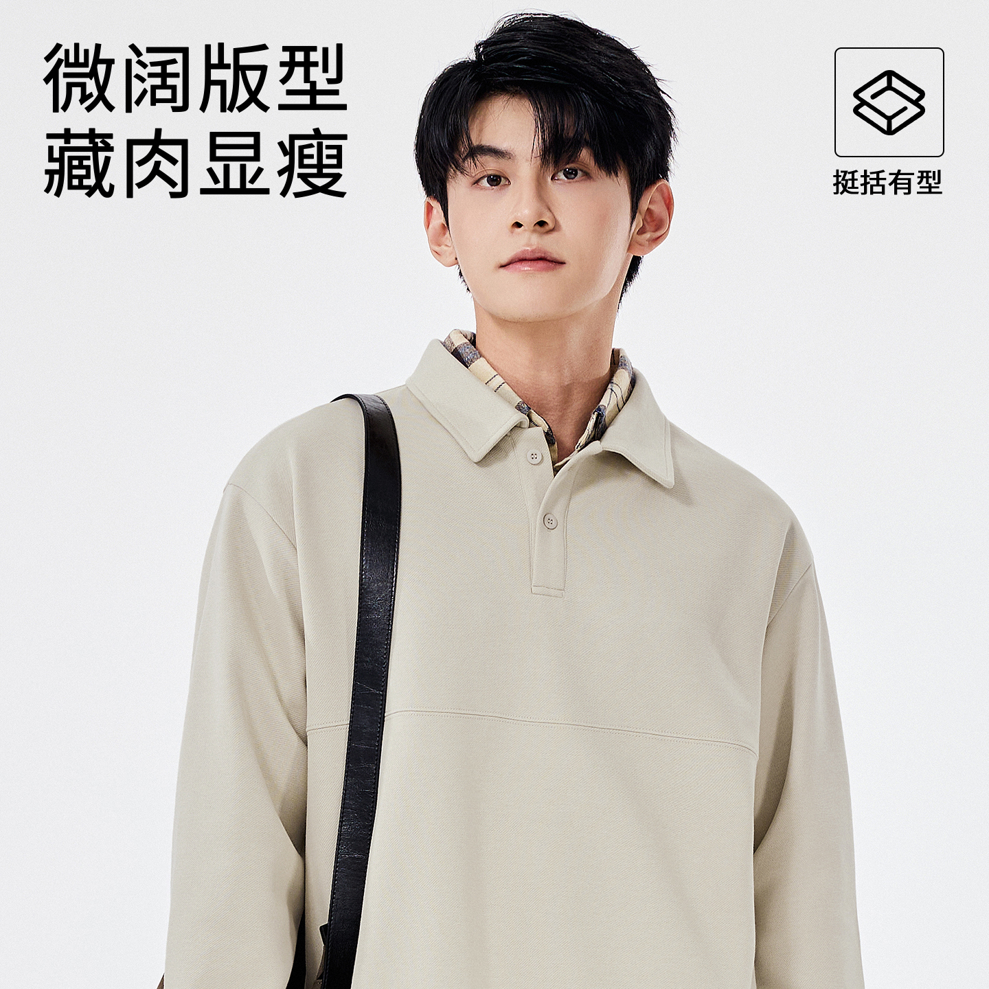 25秋冬新宽松加绒加厚上衣男 翻领POLO衫 HLA 海澜之家山不在高长袖