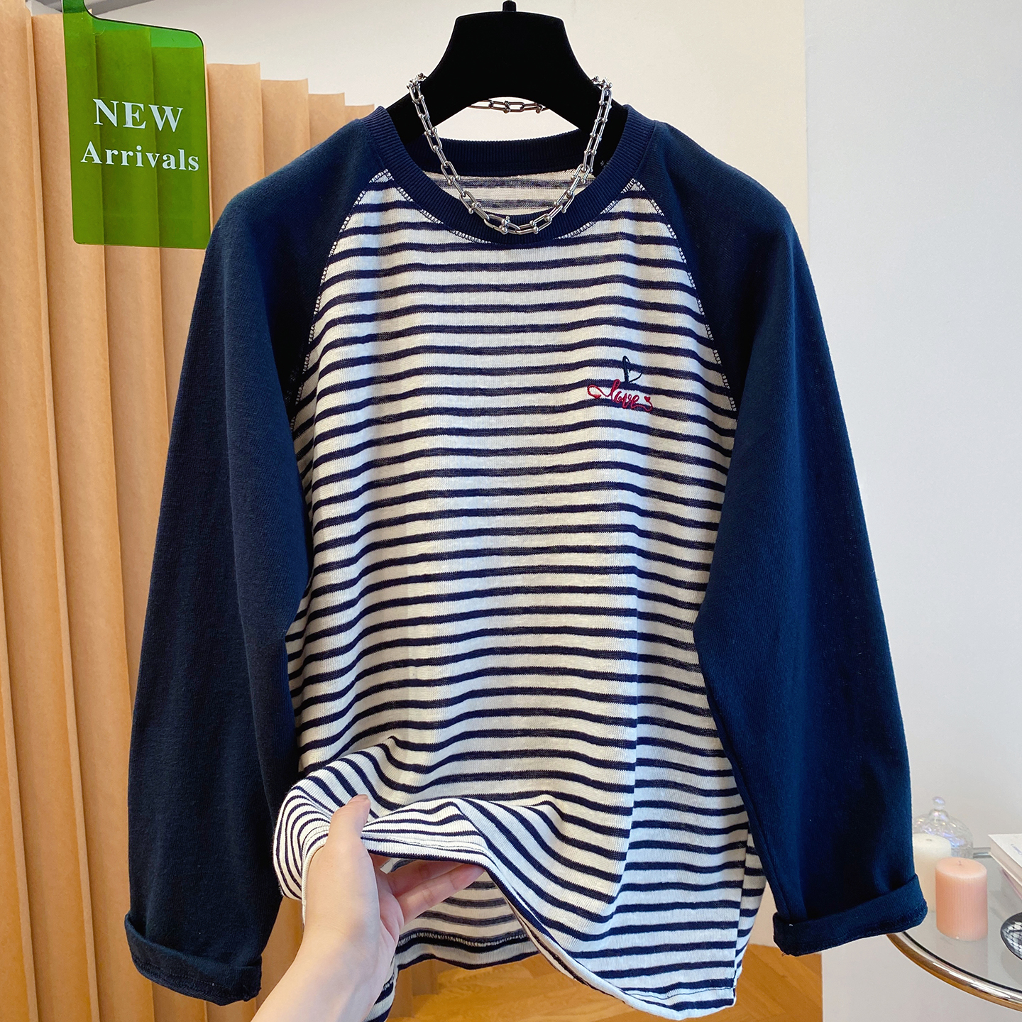 小个子宽松休闲防晒衫 2025新款 上衣 t恤女长袖 韩系条纹拼接插肩袖