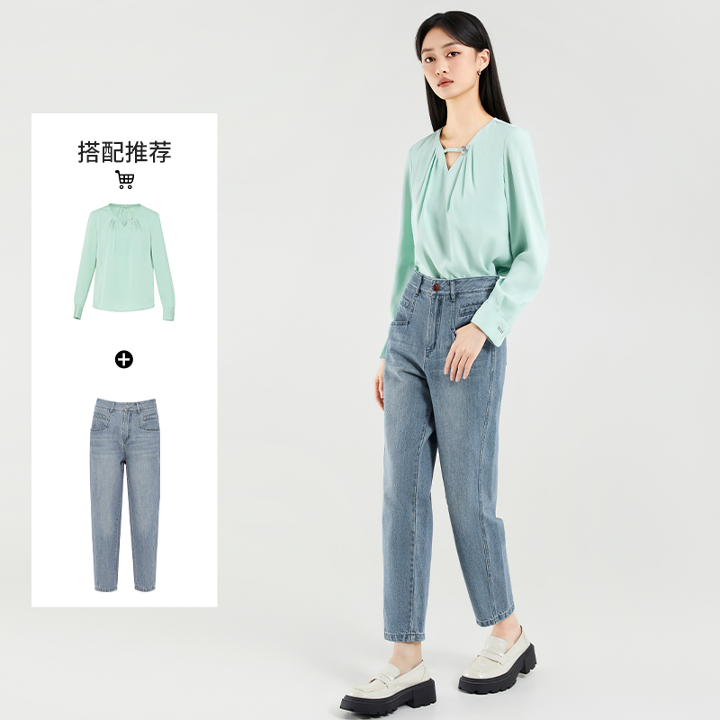 设计感温柔气质蕾丝雪纺小衫 女2025秋季 上衣 衬衫 钉珠木耳立领长袖