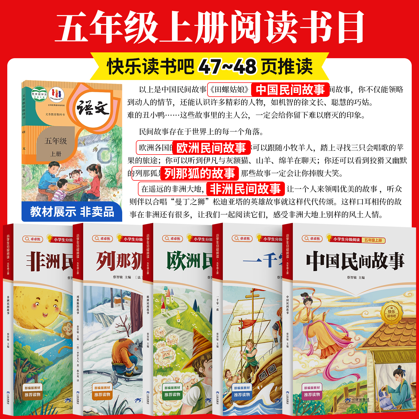 书目5 故事五上阅读书籍配套人教版 中国民间故事五年级上册必读正版 课外书欧洲非洲民间列那狐