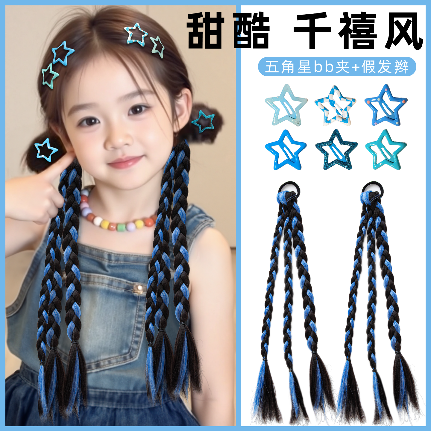 儿童假发辫子拳击辫女童嘻哈头饰甜酷女孩发夹街舞彩色千禧风发绳