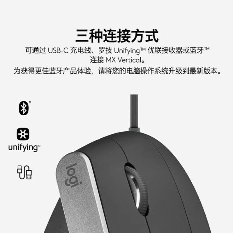 罗技人体工学系列LIFT垂直鼠标无线蓝牙轻音5号电池 自营