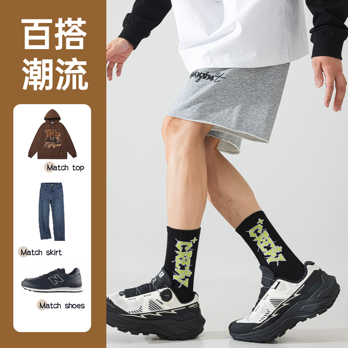 青少年袜子学生运动无骨春秋款 吸汗潮流初高中生纯色棉中筒袜