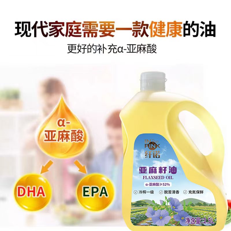 送小瓶 纤诺亚麻籽油一级冷榨食用油纯亚麻籽油植物油直接喝2.5L