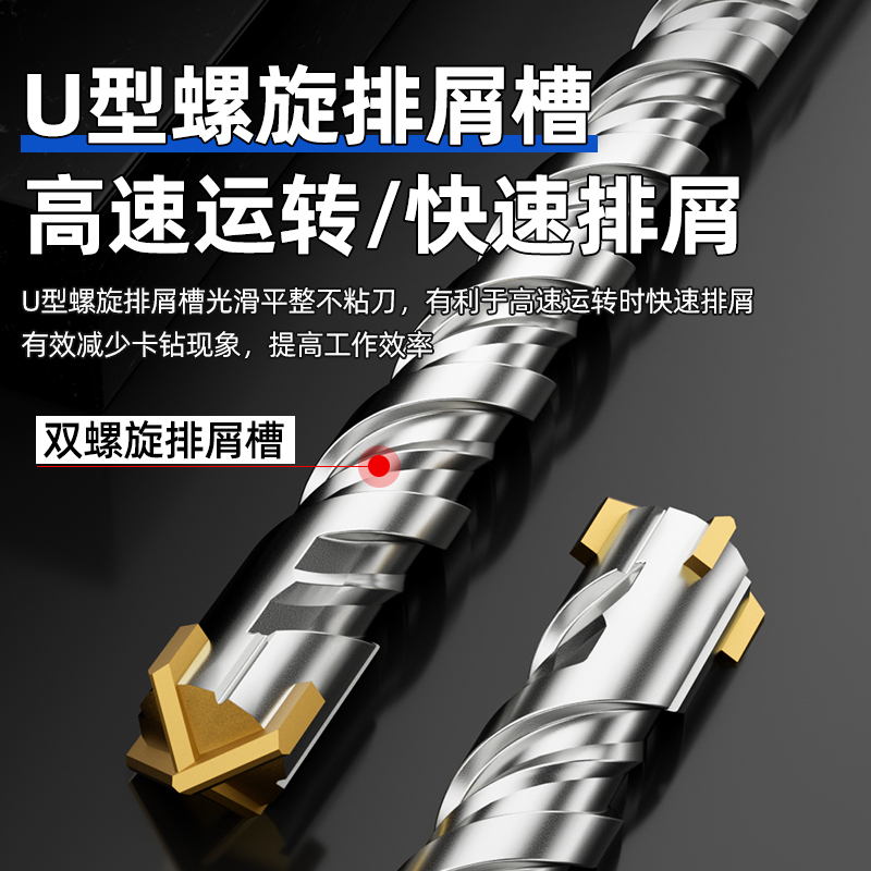 十字冲击钻头圆柄两坑两槽方柄轻型电锤冲击钻专用钢筋混凝土打孔