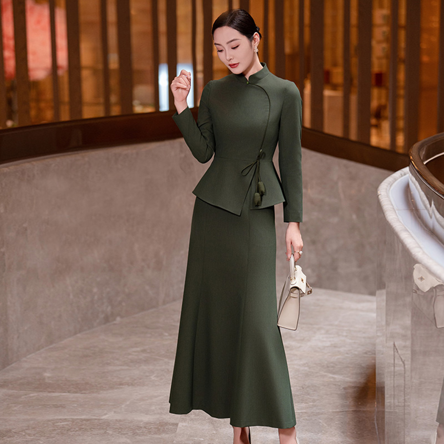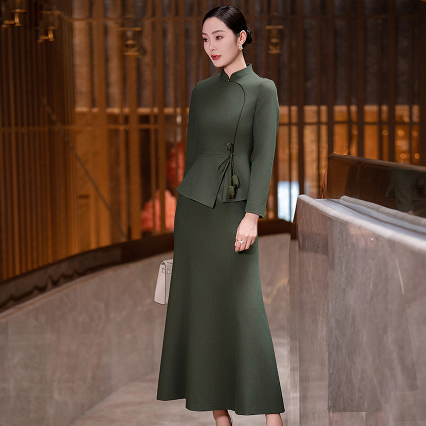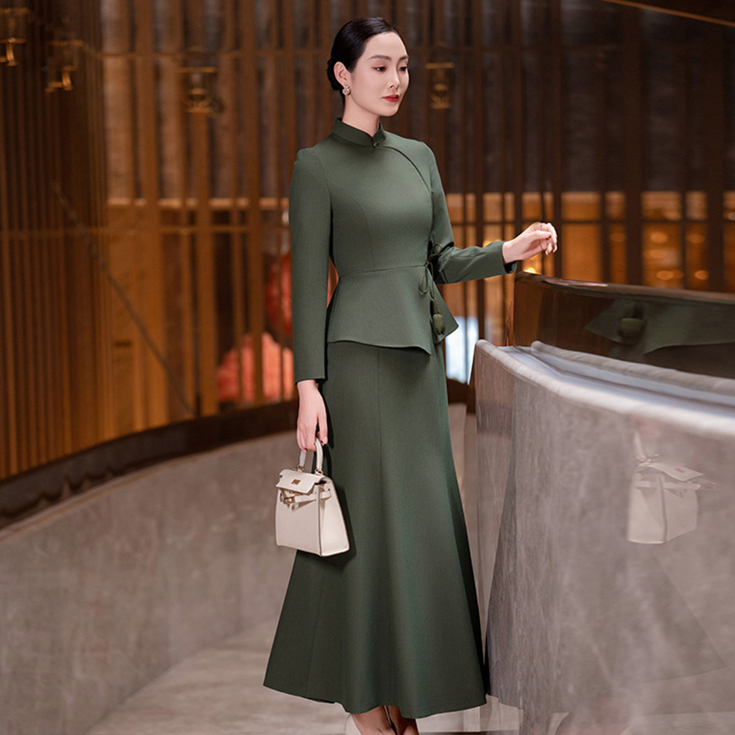 气质复古修身 新中式 新款 裙女2025秋季 显瘦半身裙两件套裙 国风套装
