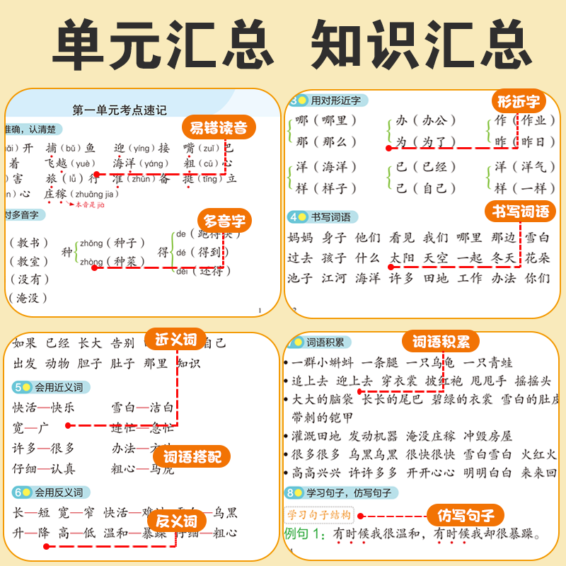 考点速记一年级二年级三年级上册下册人教版 单元 小学生课堂笔记重点知识点积累听写默写同步练习册 小学语文知识点课课贴 童年颂
