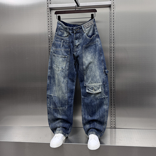 拼接宽松直筒长裤 潮牌高街vibe重磅水洗牛仔裤 美式 新款 男2025秋季