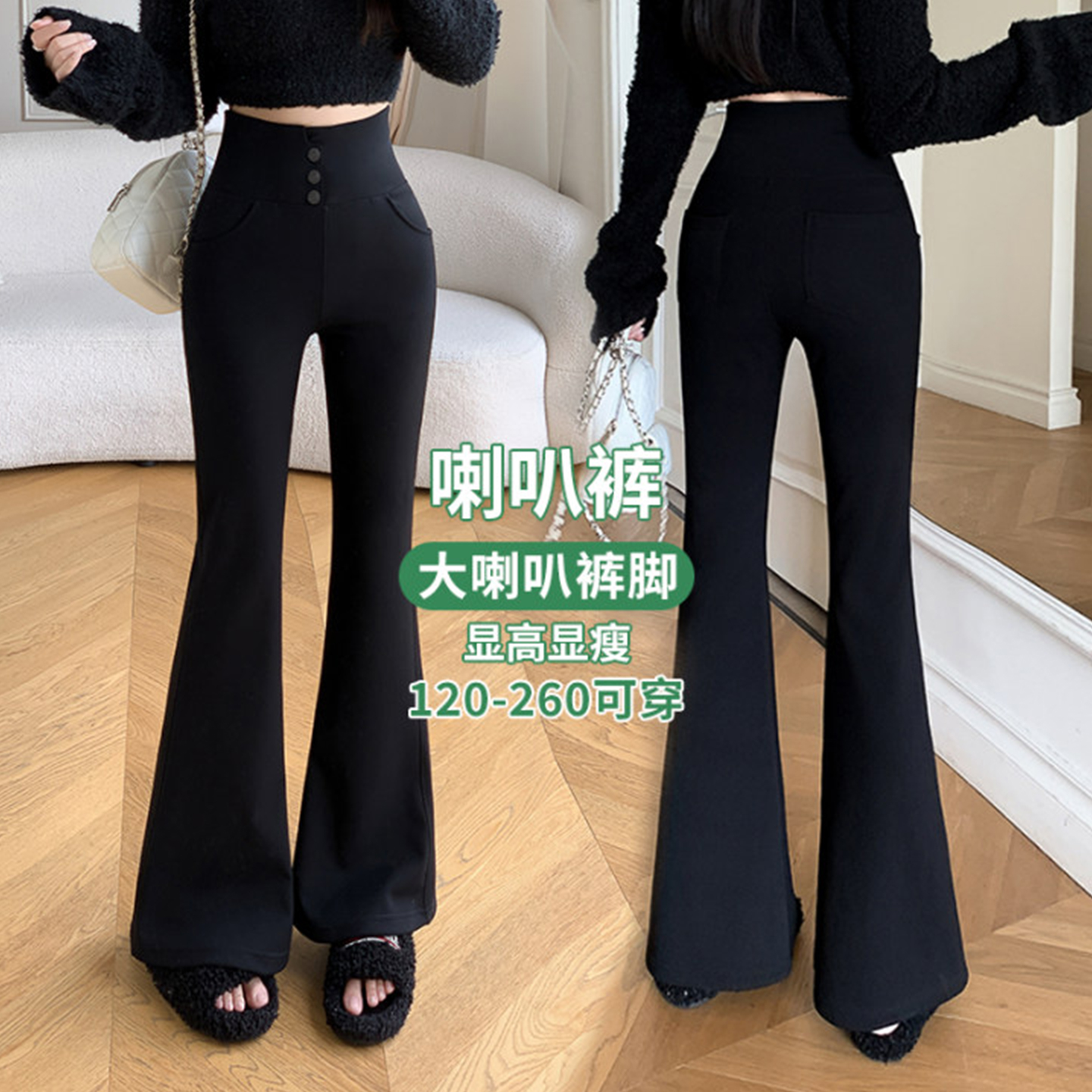 显瘦休闲阔腿外穿马蹄裤 胖mm260斤女春秋修身 大码 纤小象大喇叭裤