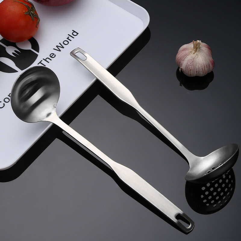 不锈钢汤勺家用加厚长柄火锅勺厨房创意加深汤壳大号公用分餐漏勺