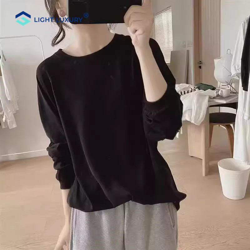 庆园羊 T恤打底衫 100%纯棉 百搭不透长袖 男女同款 QINGYUANYANG