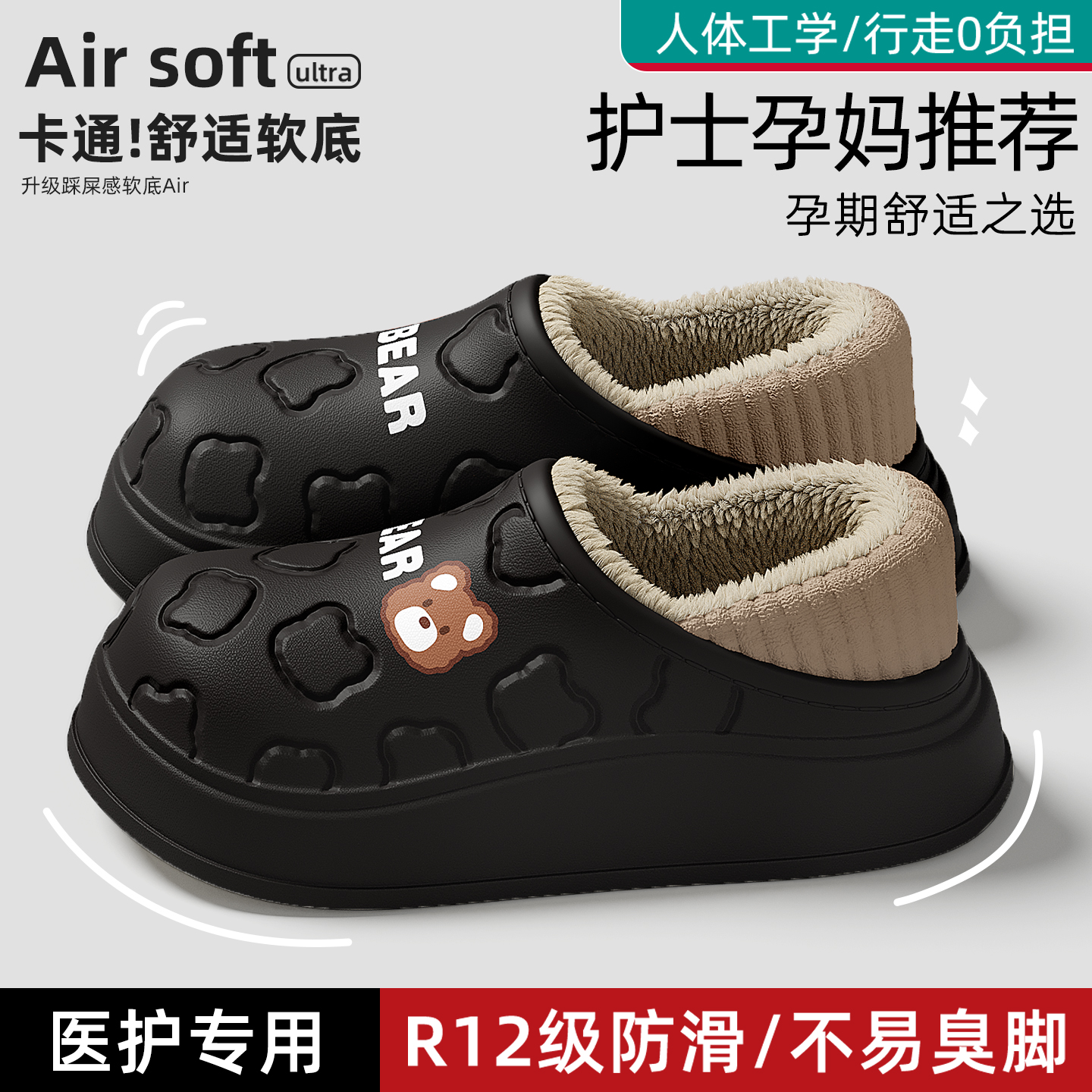 防滑防水厚底保暖毛绒月子棉鞋 室内家居2025新款 女士秋冬季 棉拖鞋