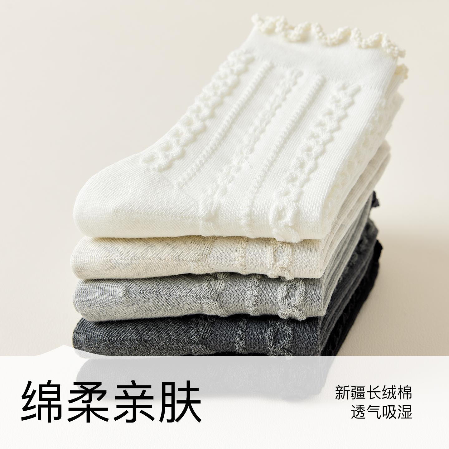 棉伙棉伴海藻袜舒适抗菌防臭男女商务运动纯色裸感中筒袜