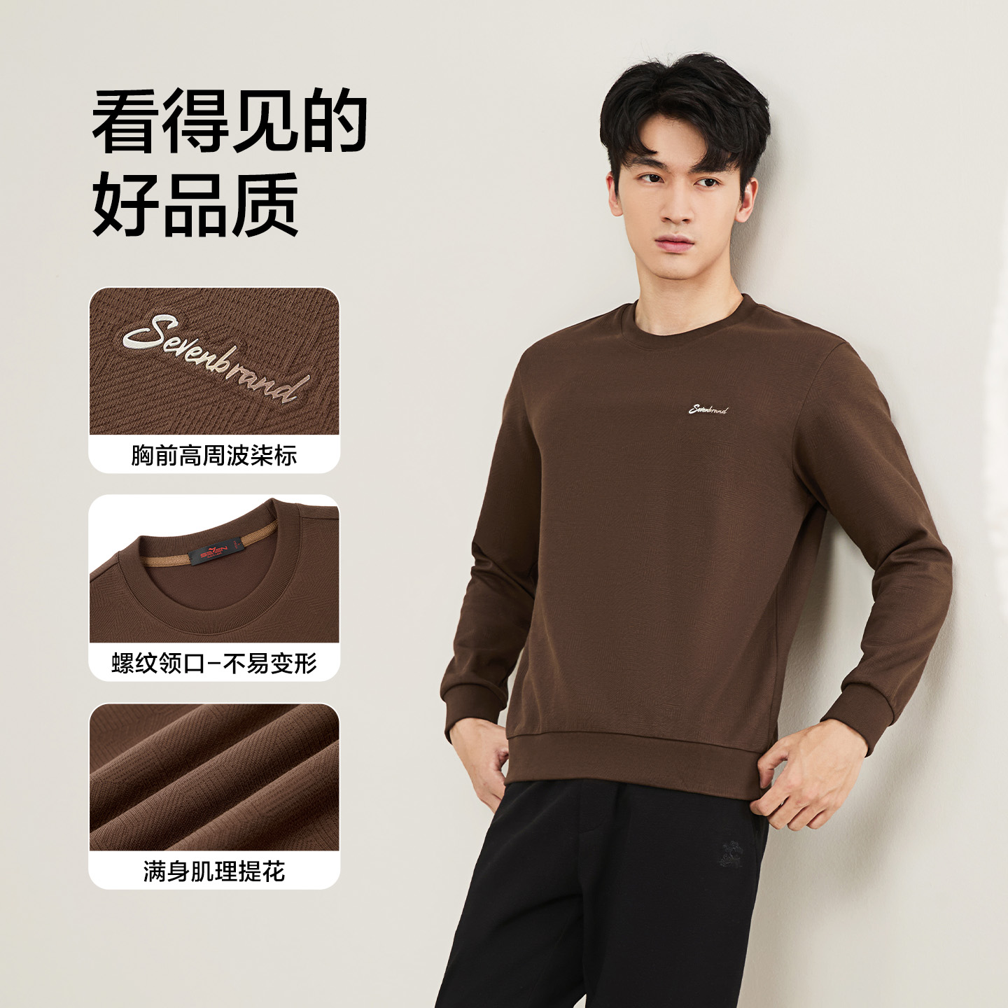 长袖 柒牌男装 套头卫衣圆领提花休闲中青年上衣 提花肌理卫衣