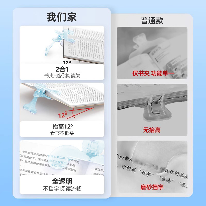宝盖头书夹带支架小学生桌面透明书本翻页阅读固定器多功能防滑夹