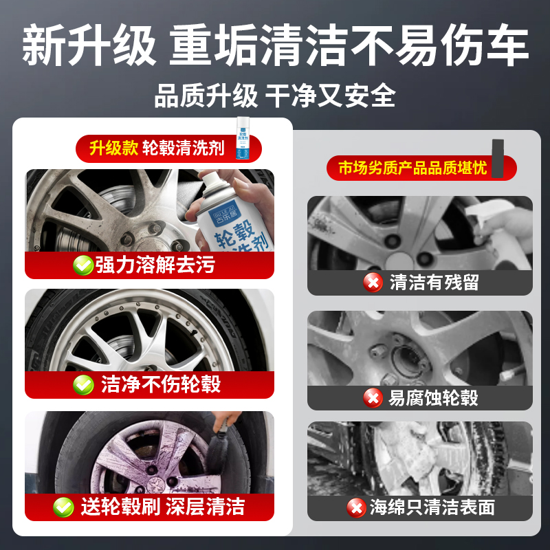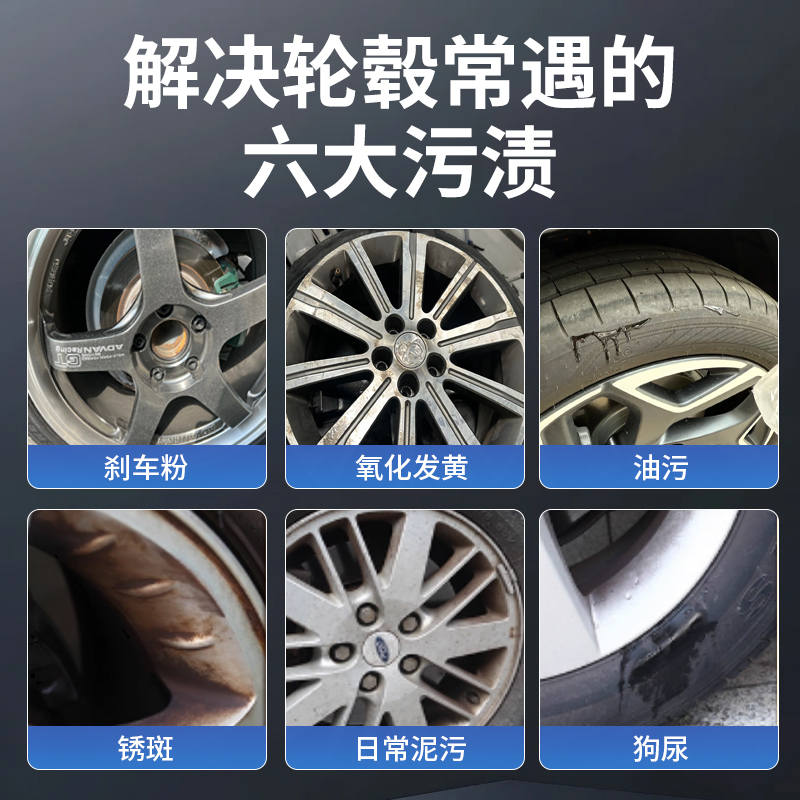 轮毂专用清洗剂汽车除锈铝合金强力轮胎钢圈刹车去除清洁铁粉去污