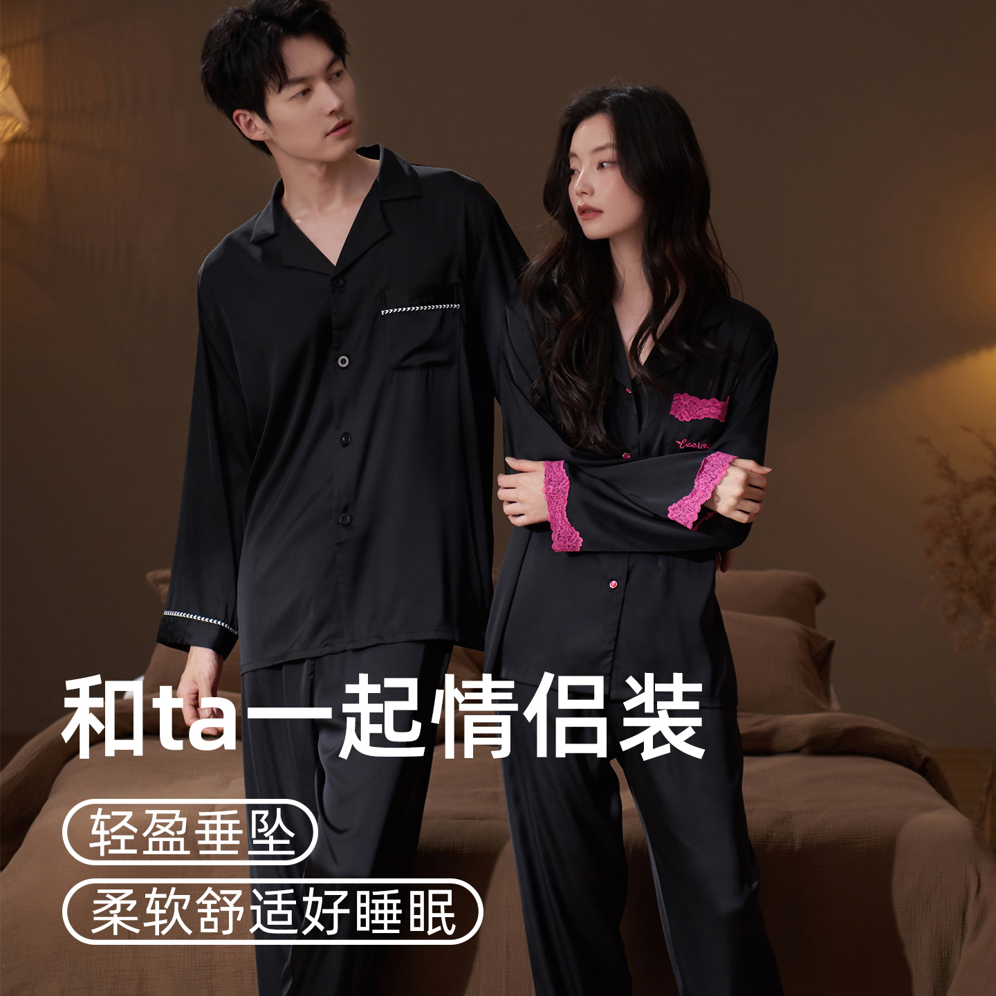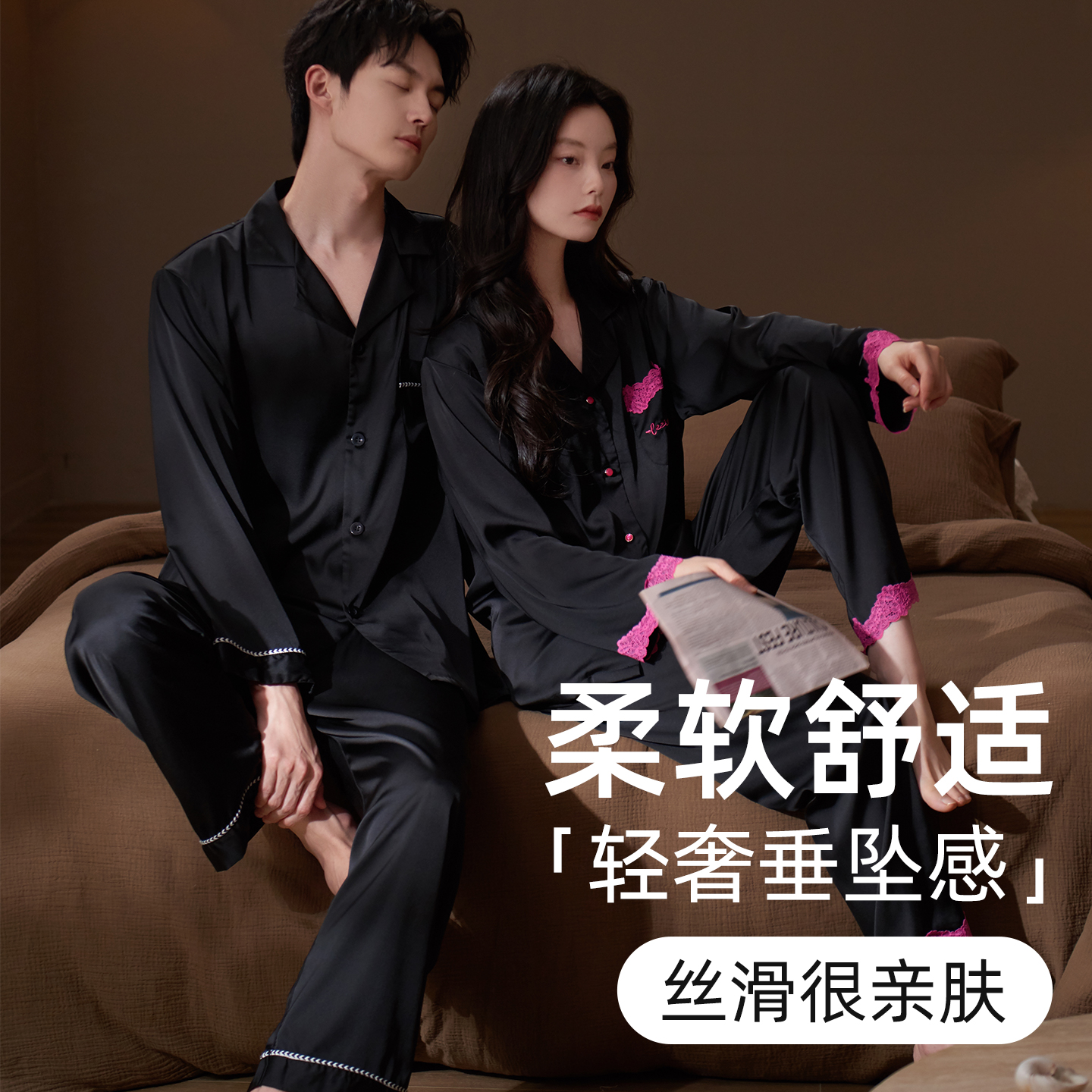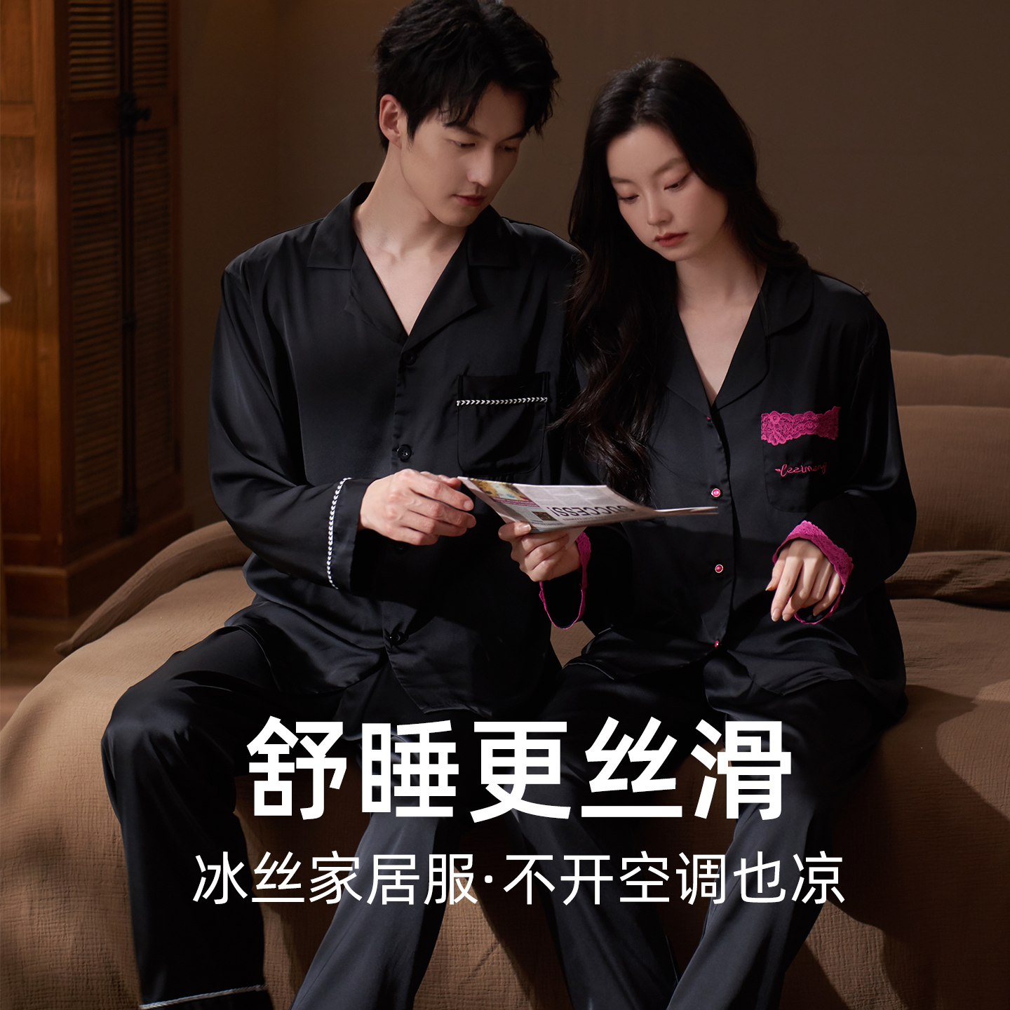 春秋款 家居服男士 丝绸黑色高级感 冰丝长袖 乐姿梦情侣睡衣女春夏季