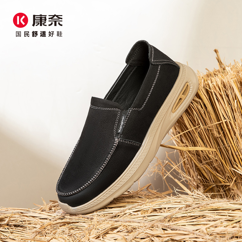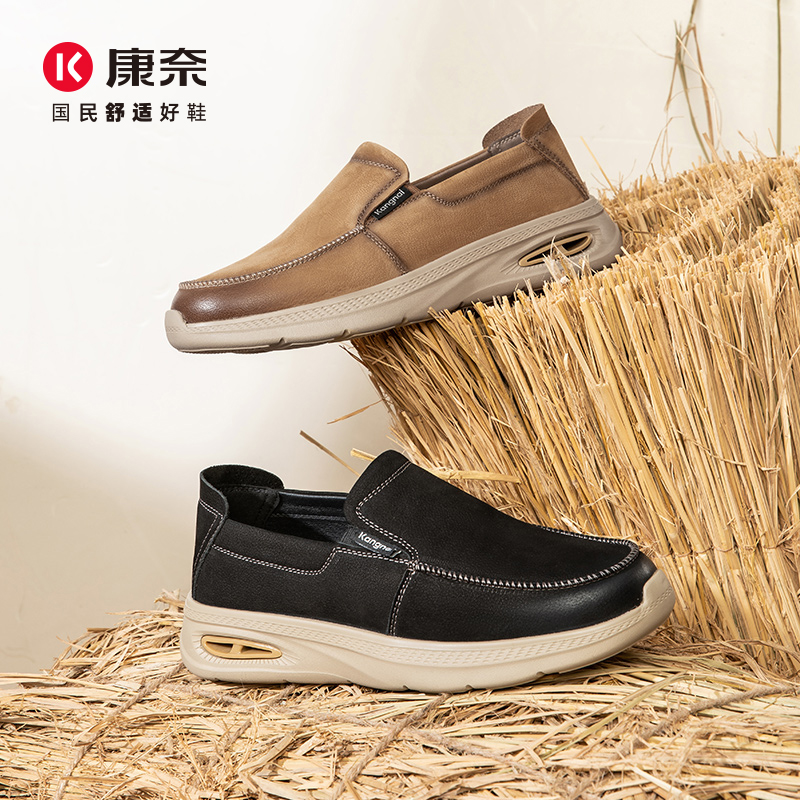户外软底轻便懒人一脚蹬乐福鞋 康奈男鞋 休闲鞋 秋厚底皮鞋 2025新款
