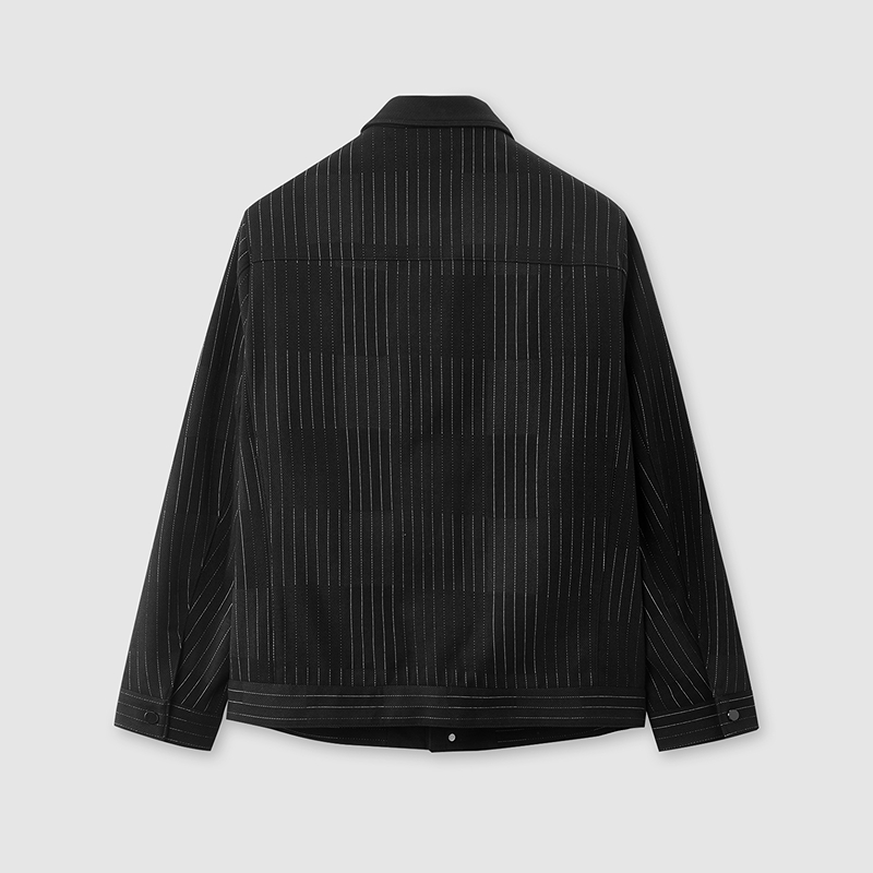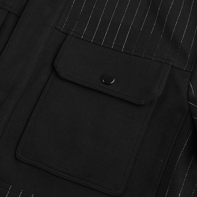V37美式 高街复古格子拼接假两件外套 设计感双领子运动夹克男秋季
