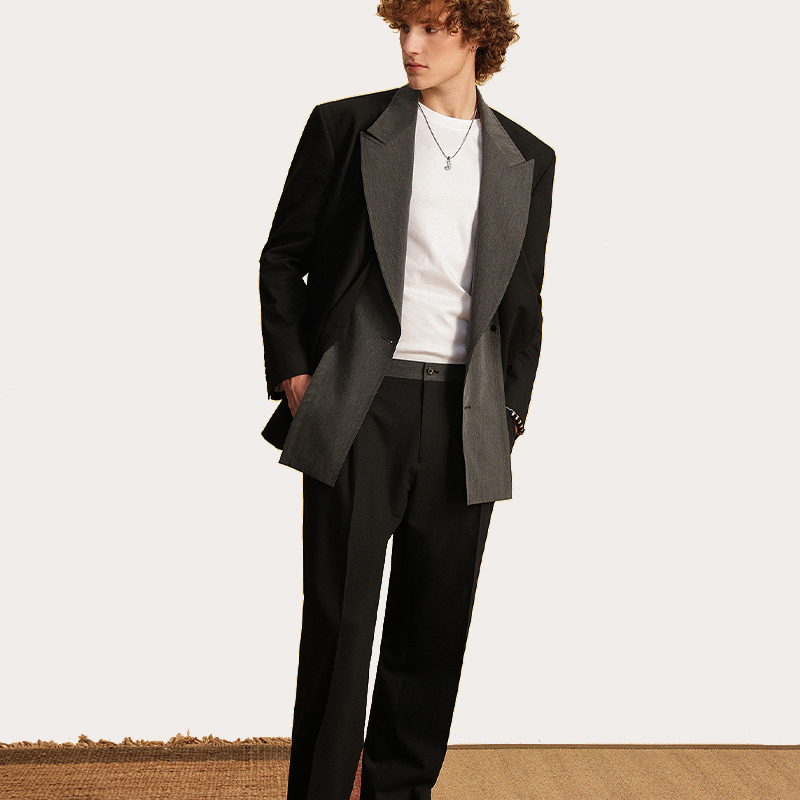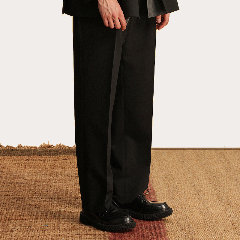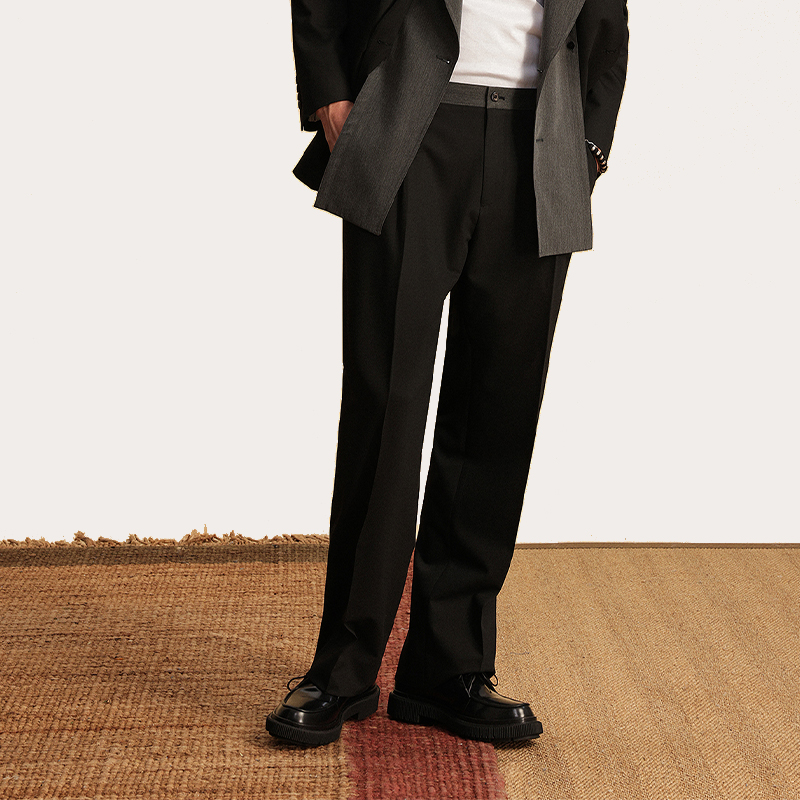 女春秋新款 休闲直筒慵懒松弛感裤 高腰垂感窄版 裤 子 西装 黑色阔腿裤