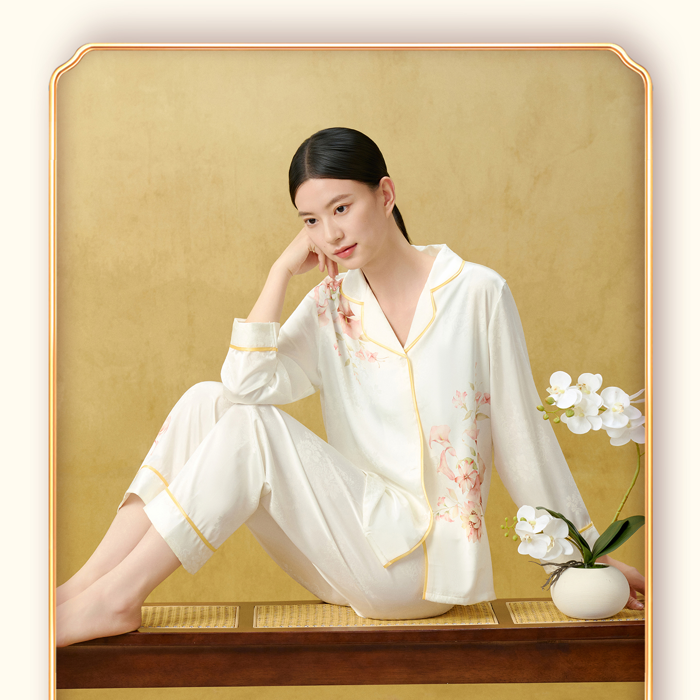 柔感 家居服薄款 家乐芬睡衣女士春秋款 纯棉长袖 高级感套装 秋季